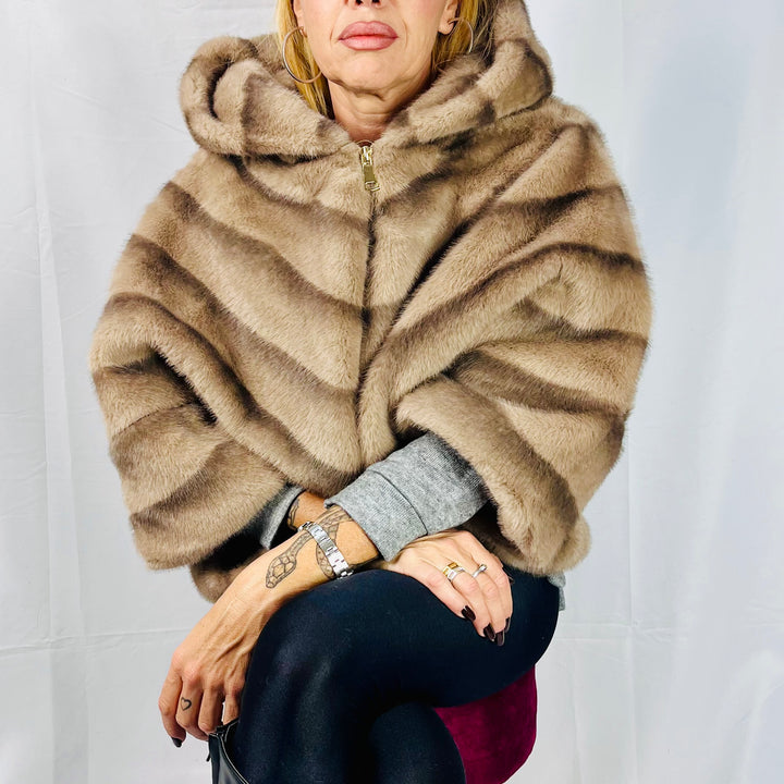 Cappottino Moena Con Cappuccio - Eco Visone Beige