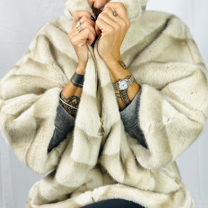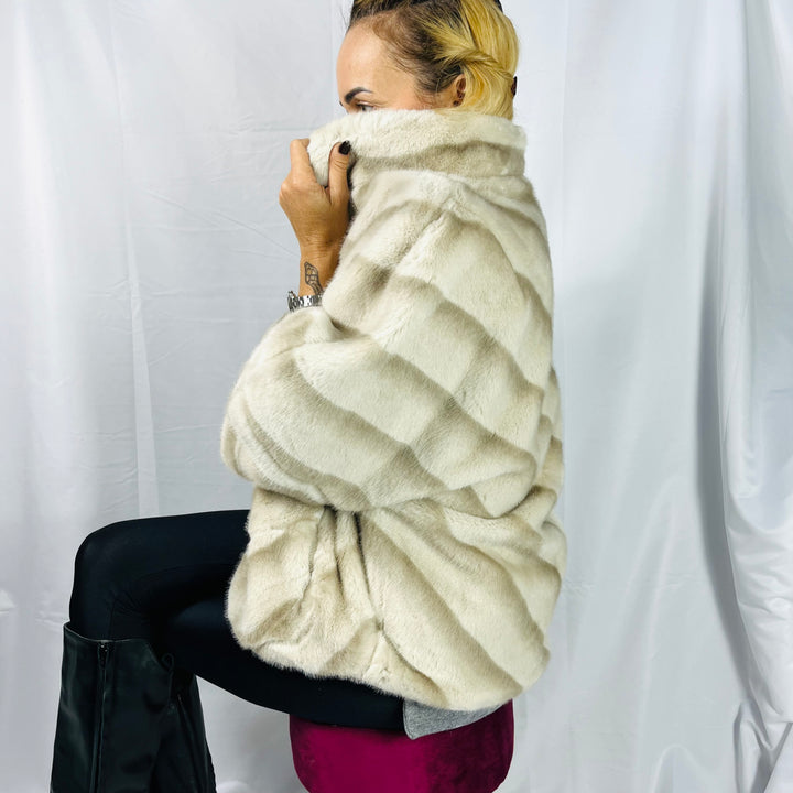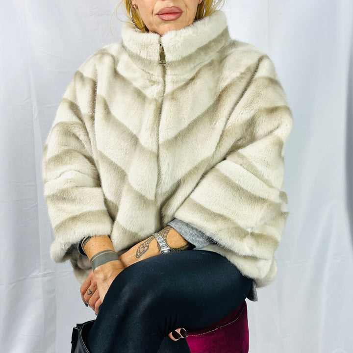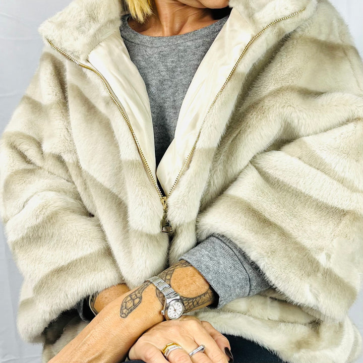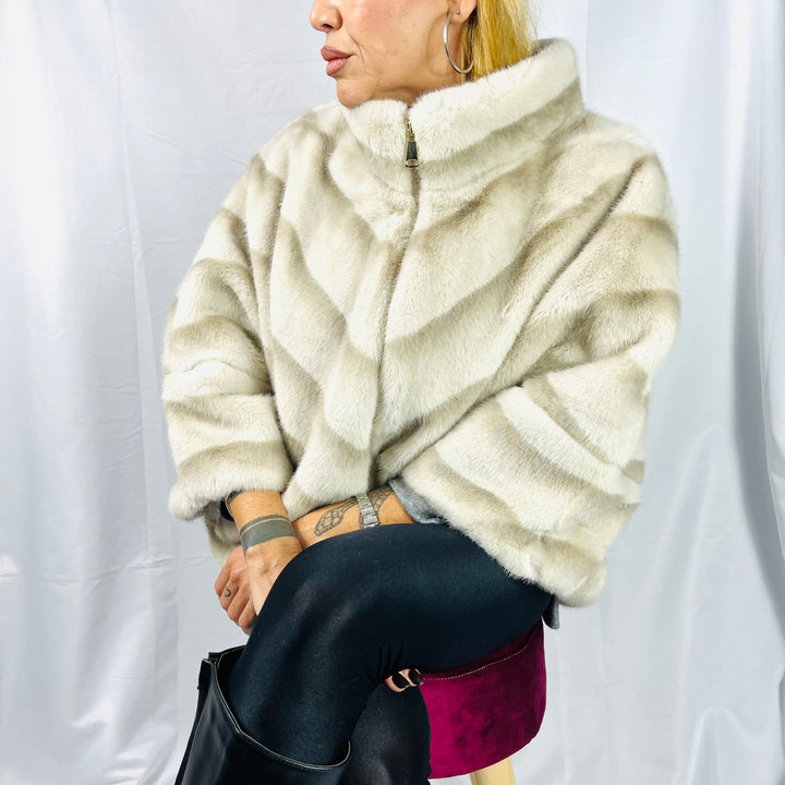 Questo cappottino in eco visone è l'essenza del lusso e del comfort, disponibile in quattro eleganti colori per adattarsi a ogni stile: beige, tortora, marrone e grigio. Il taglio morbido e avvolgente dona un tocco di raffinatezza a ogni outfit, rendendolo perfetto sia per occasioni casual che per serate speciali. La chiusura con zip dorata e le ampie tasche laterali completano questo capo, assicurando calore e praticità senza rinunciare all'eleganza.