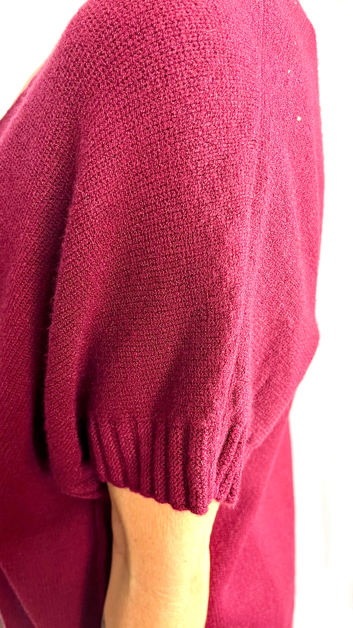 Maniche a tre quarti, ampia scollatura a V.