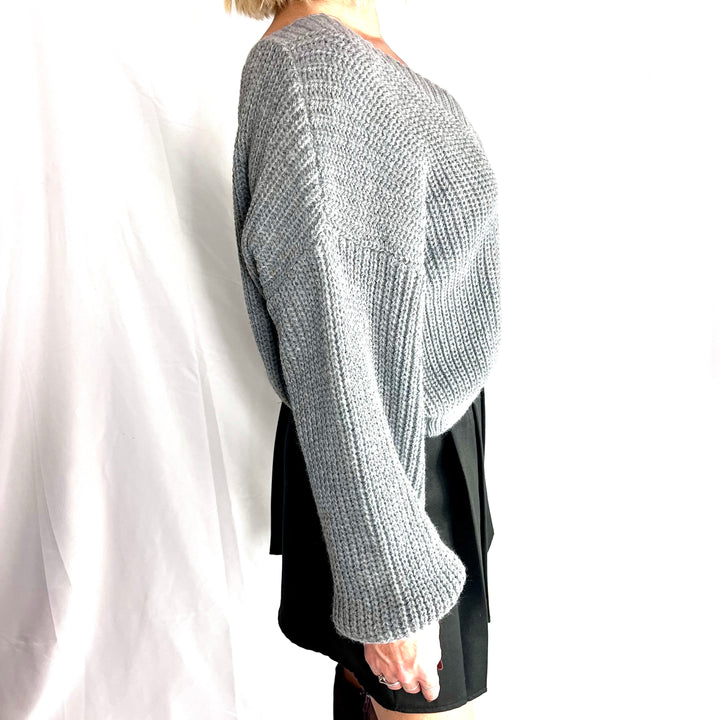 Maniche lunga, ampia scollatura a V.