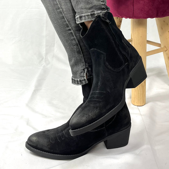 Stivali Texani Bassi Rebi - Vera Pelle Made In Italy