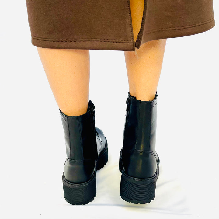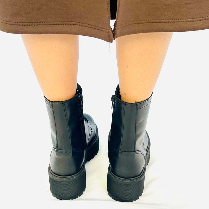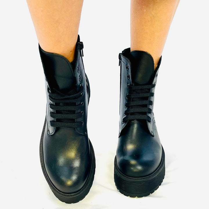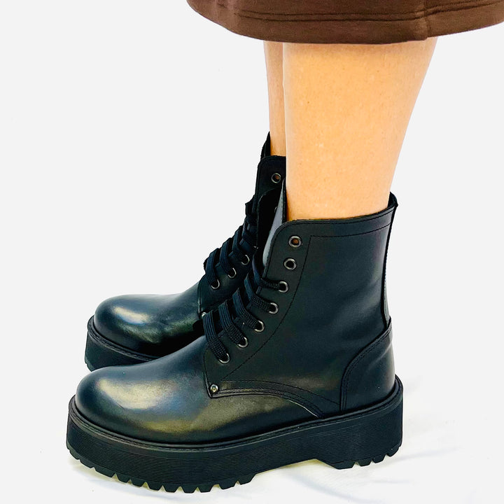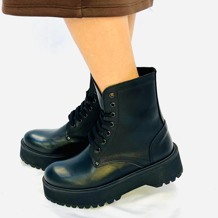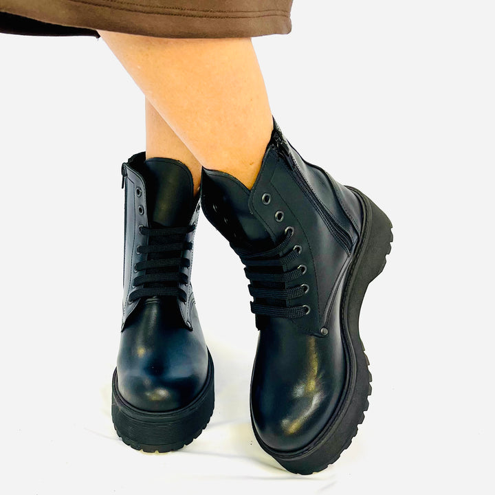 Biker In pelle italiana, con cerniera laterale, gambale basso e gomma leggera. Chiusura con lacci tono su tono.