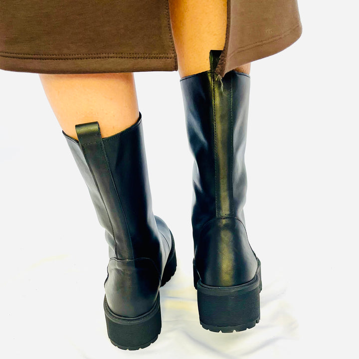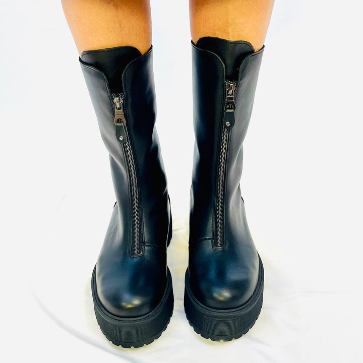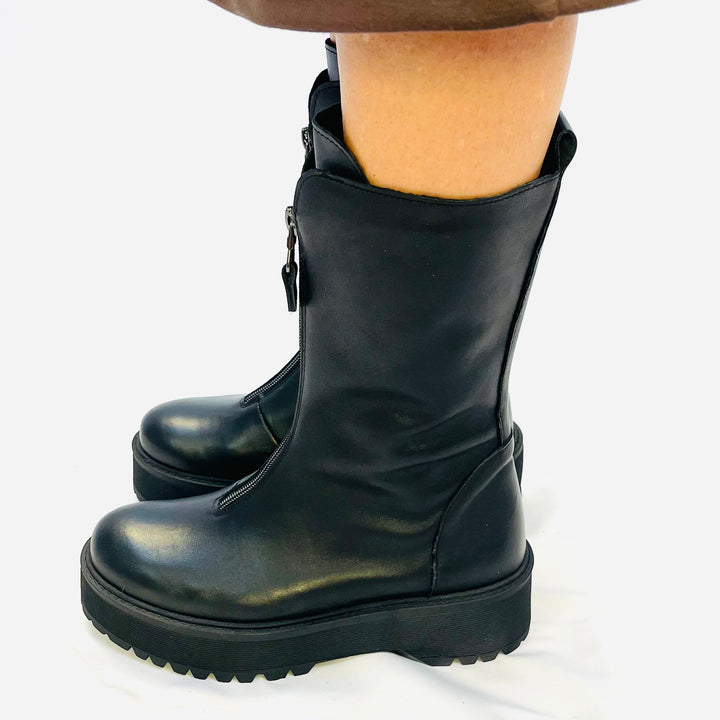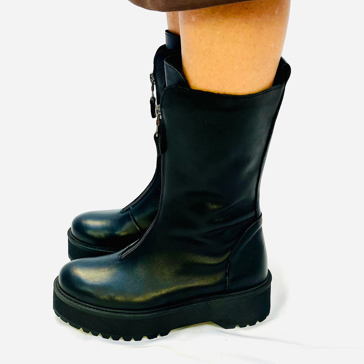 Biker In pelle italiana, con cerniera frontale, gambale morbido e gomma leggera.