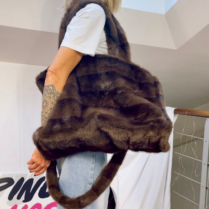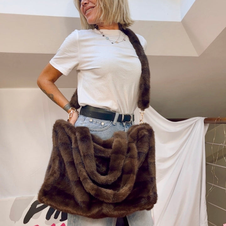 Questa maxi borsa in eco visone è il connubio perfetto tra lusso e praticità. Disponibile in diverse varianti di colore e fantasia, tra cui la raffinata stampa animalier e le eleganti strisce tono su tono, è l’accessorio ideale per aggiungere un tocco glamour ai tuoi look invernali. La sua struttura morbida e capiente la rende ideale per l’uso quotidiano, mantenendo comunque uno stile impeccabile. Le ampie maniglie imbottite garantiscono comfort durante tutto il giorno, mentre i dettagli dorati completano il design con un tocco sofisticato.