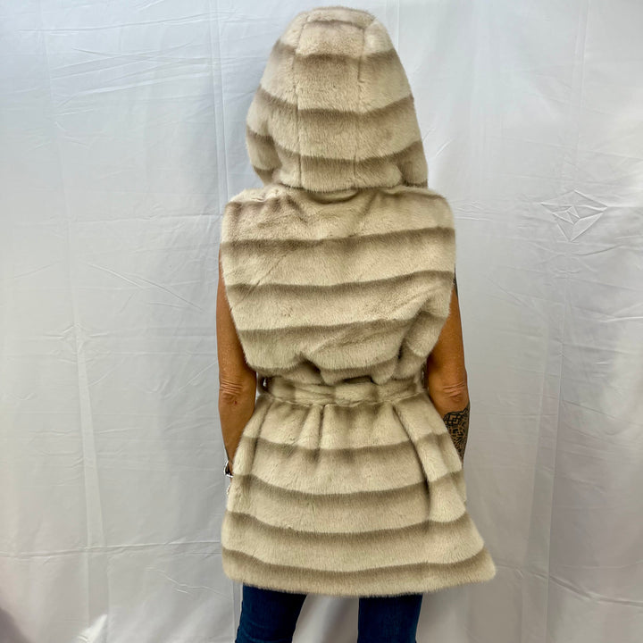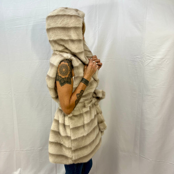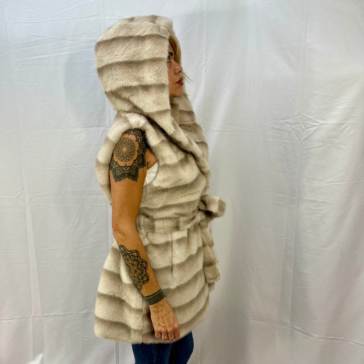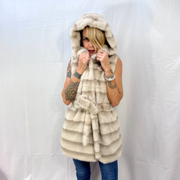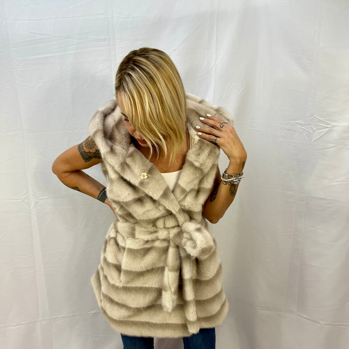 Gilet in ecovisone con cappuccio e cinta – Chic e versatile