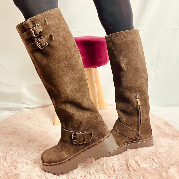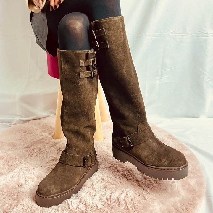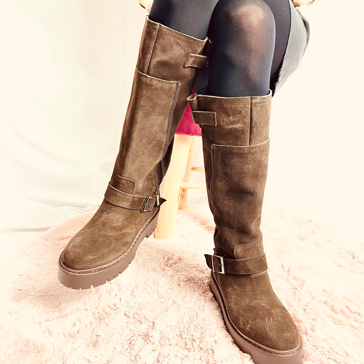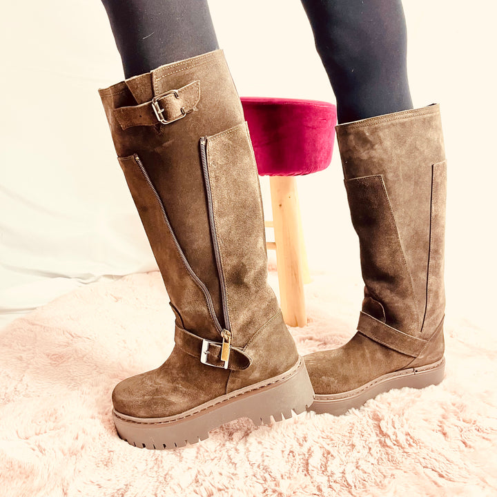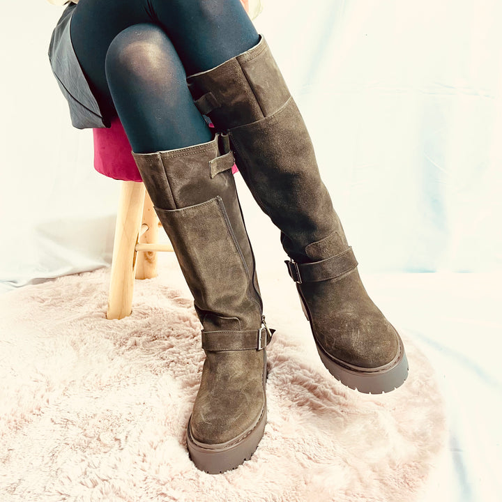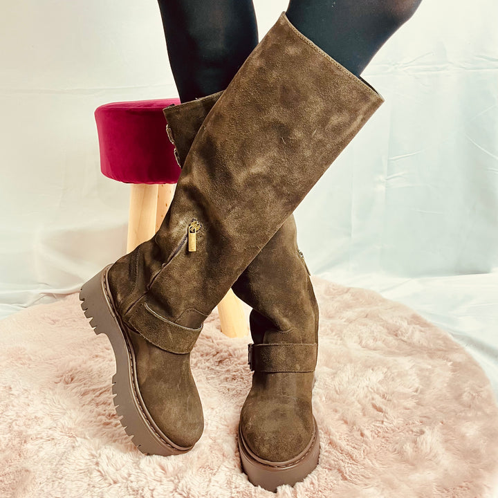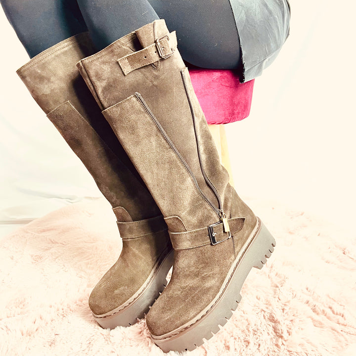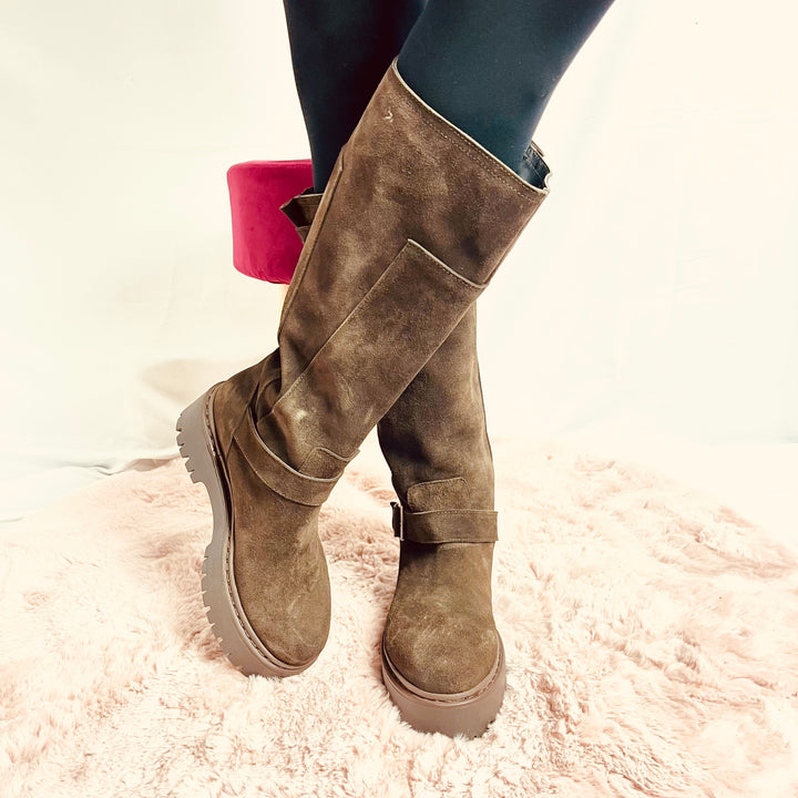 Stivali Silvia Platform In Camoscio - Made In Italy